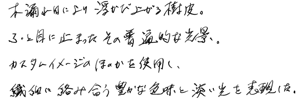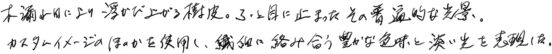 发现了被阳光轻抚的树皮。一个普通的光景,却让我流连